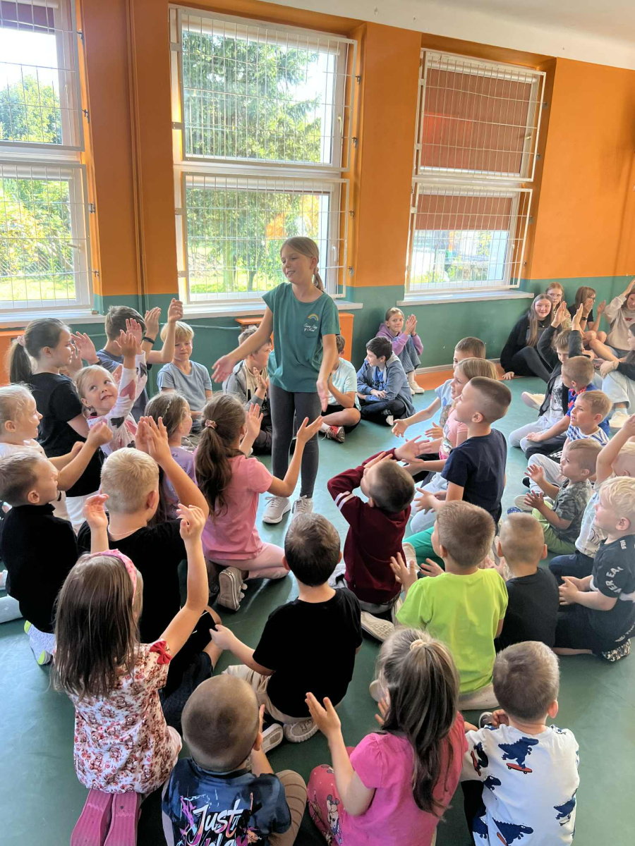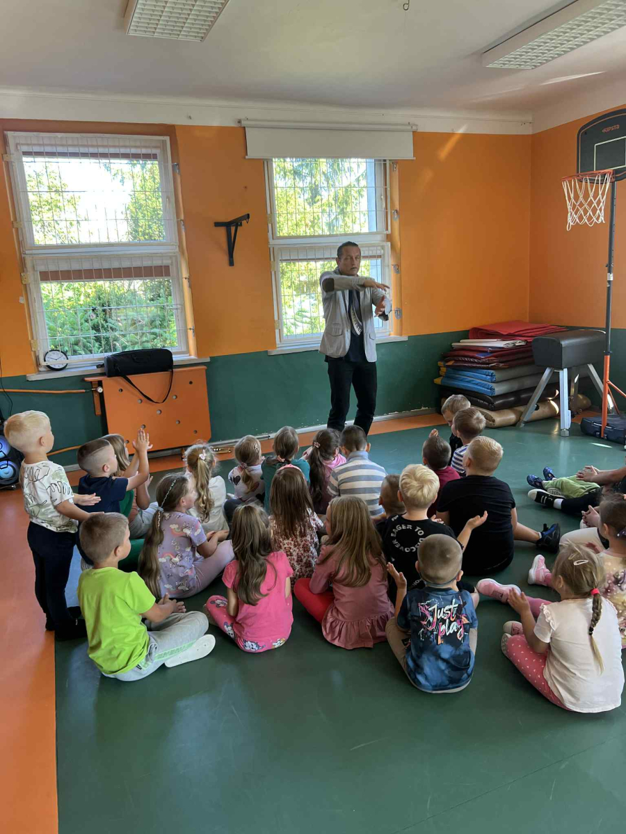 Podczas zajęć dzieci miały okazję nie tylko posłuchać gry na żywo, ale również dowiedzieć się wielu interesujących informacji na temat budowy i historii instrumentu. Pan muzyk w atrakcyjny sposób angażował uczniów, proponując różnorodne zabawy integracyjne i muzyczne aktywności, które łączyły naukę z dobrą zabawą.