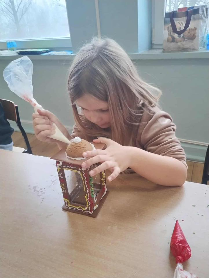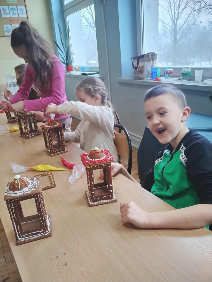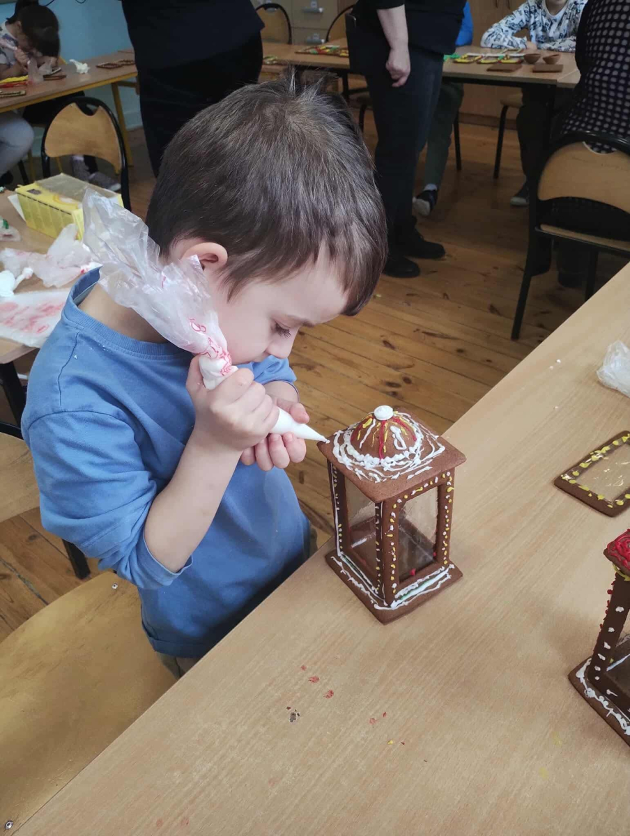 Razem tworzyliśmy choinki piernikowe, latarenki oraz urocze domki świąteczne. Wyobraźnia dzieci nie miała granic – powstały naprawdę wyjątkowe, pomysłowe i przepiękne prace, które mogłyby ozdobić niejedną świąteczną wystawę!