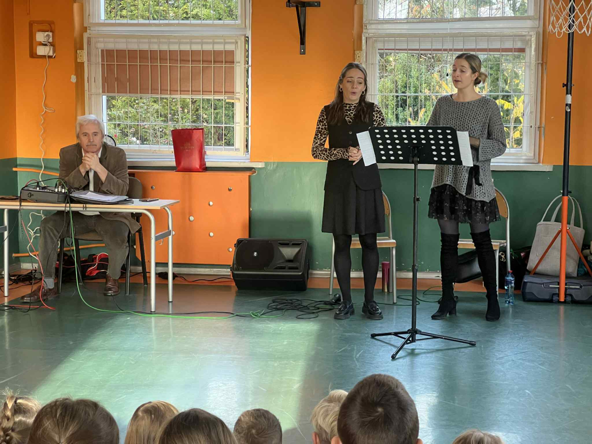 W naszej szkole odbyła się wyjątkowa audycja muzyczna zatytułowana „Musical, opera i coś jeszcze”. Tego dnia szkolna sala zamieniła się w prawdziwą scenę artystyczną! Gościliśmy panie, które zachwyciły wszystkich swoim pięknym, operowym śpiewem. Dzięki nim uczniowie poznali fascynujący świat opery i musicalu – dowiedzieli się, jak powstaje spektakl, na czym polega praca śpiewaka i dlaczego muzyka klasyczna wcale nie musi być poważna!