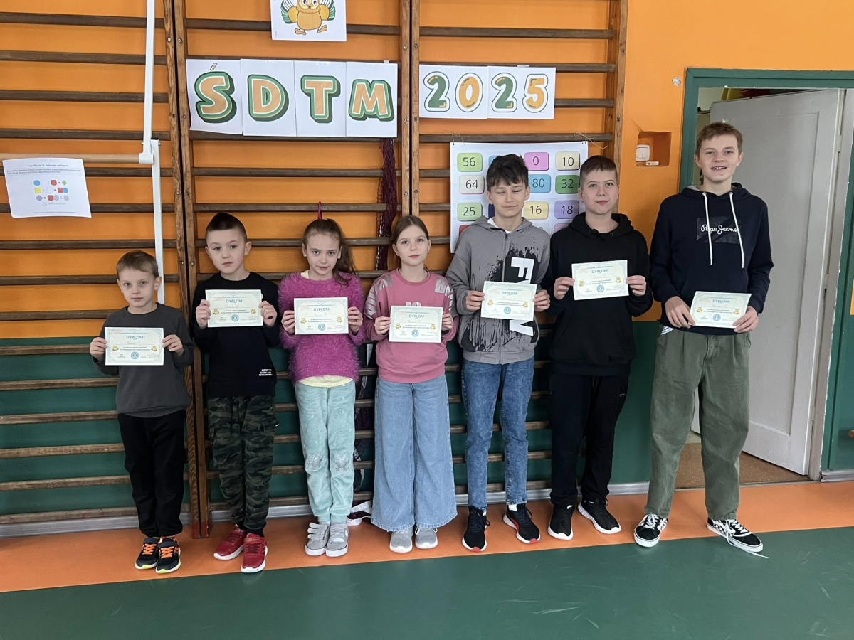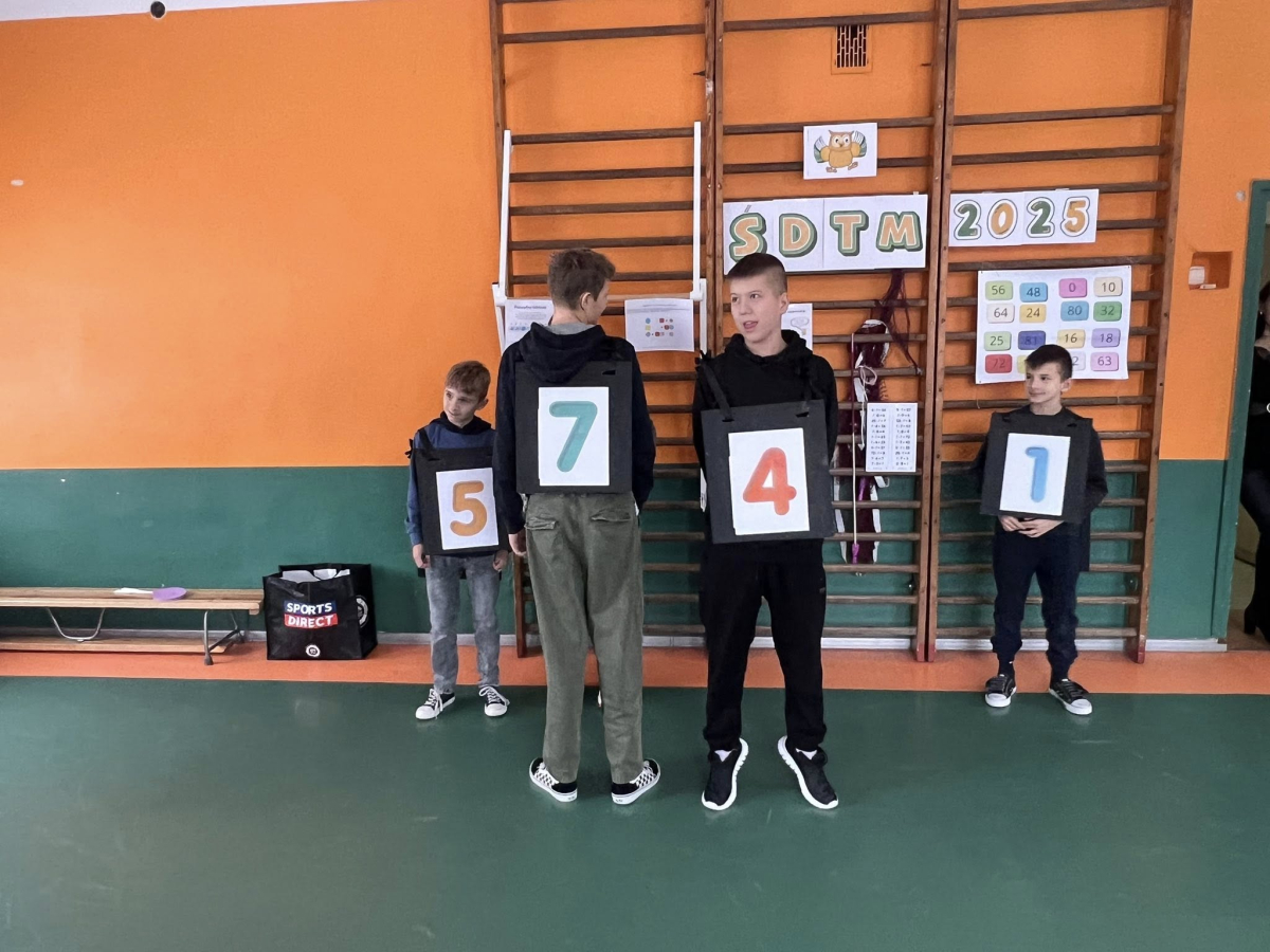 21 listopada 2025 roku w naszej szkole świętowaliśmy Światowy Dzień Tabliczki Mnożenia, którego koordynatorką była p. Katarzyna Stecko. Uczniowie klas 1–8 brali udział w różnorodnych, kreatywnych zadaniach sprawdzających znajomość mnożenia. Najwięcej emocji wzbudziła zabawa z łapkami na muchy, podczas której uczestnicy musieli jak najszybciej trafić w poprawny wynik działania. Dużym powodzeniem cieszyło się również układanie cyfr tworzących właściwe odpowiedzi, co wymagało logicznego myślenia i spostrzegawczości.